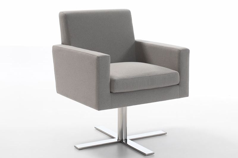 El pie giratorio en acero inoxidable aporta ligereza visual al conjunto de la pieza.